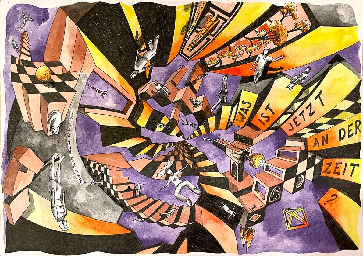 Additionally, I will live paint on Sunday 24th at 15:00 during the session “Stories from the Green Salon, Spaces from the Lufoverse”. Hence, my mission will be to colour new versions of “Was ist jetzt an der Zeit?” while Li Anna reads her texts. Consequently, the session will showcase how art and literature intertwine. Indeed, she will read passages from “Im Grünen Salon. Begegnung” and “Die magische Kraft der vier Elemente” (her new novel released last week) while I paint.
